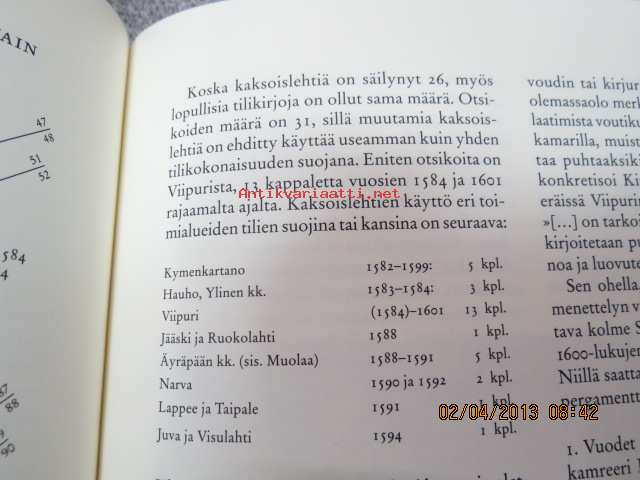 | Saatavilla | 1 kpl | | Julkaisuvuosi | 2002 | | Sivuja | 296 | | Painos | 1. | | Kunto | K3 | | Sidonta/painoasu | Sidottu (kansipaperit) | | ISBN | 951-746-339-1 | | Kielet | Suomi |