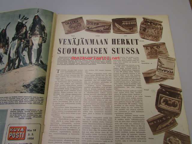 Valiolehdet Oy, 1956Kuvaposti 3. 5. 1956 nr 18 sis. mm. seur. artikkelit / kuvat / mainokset; Hilma Jalkasen tytöt -kansi, intiaanit, mitä koulutus maksaa, lapsialkoholismi Ranskassa, Jomo -särkylääkemainos