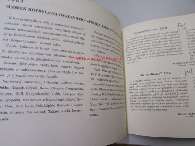 | Saatavilla | 1 kpl | | Julkaisuvuosi | 1950 | | Sivuja | 100 | | Kunto | K3 | | Sidonta/painoasu | Nidottu (pehmeäk.) | | Kielet | Suomi, Ruotsi |