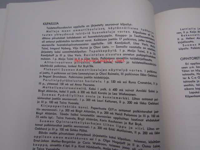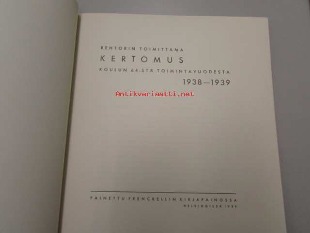 | Saatavilla | 2 kpl | | Julkaisuvuosi | 1939 | | Painos | 1. | | Kunto | K3 | | Sidonta/painoasu | Nidottu (pehmeäk.) | | Kielet | Suomi |