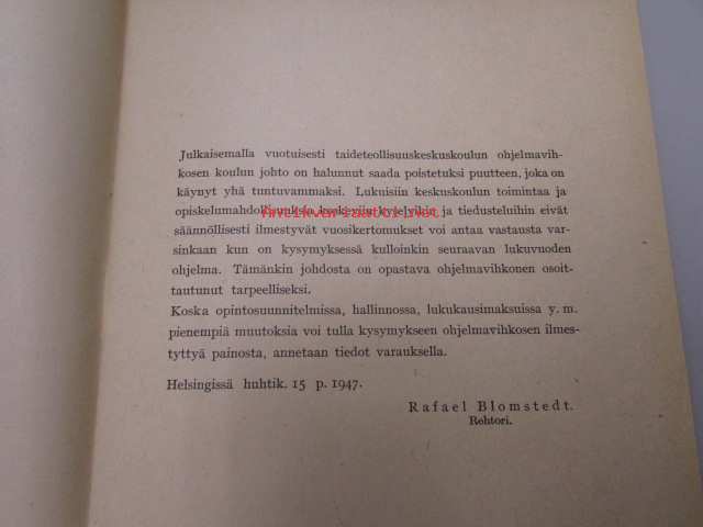 Taideteollisuuskeskuskoulu : Ohjelma lukuvuonna 1947-48