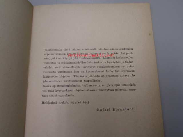Taideteollisuuskeskuskoulu : Ohjelma lukuvuonna 1945-46