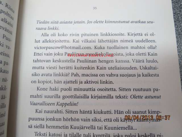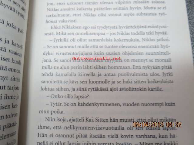 | Saatavilla | 1 kpl | | Julkaisuvuosi | 2007 | | Sivuja | 527 | | Painos | 1. | | Kunto | K3 | | Sidonta/painoasu | Sidottu (kansipaperit) | | ISBN | 978-951-1-22086-2 | | Kielet | Suomi |