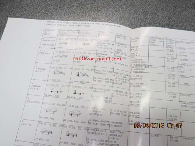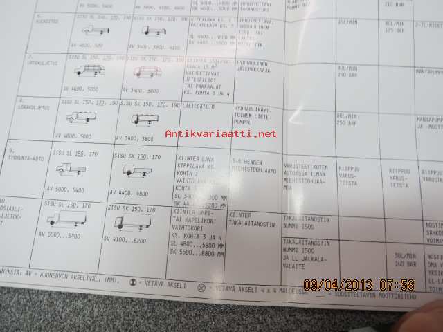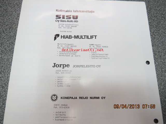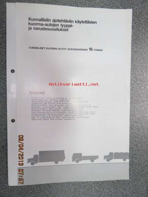 Kunnallisiin ajoneuvoihin käytettävien kuorma-autojen tyyppi- ja varustelusuositukset, 2-akseliset kuorma-autot, kokonaispaino 16 tonnia -esite, Sisu, Hiab-Multilift, Jorpe, Konepaja Reijo Nurmi21 x 30 cm.