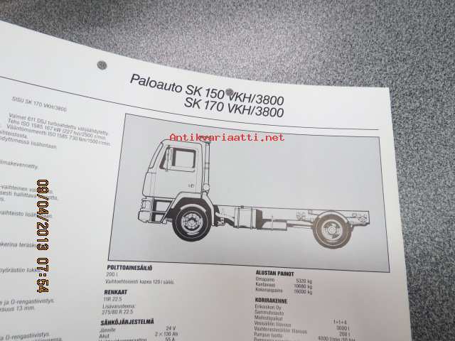 Sisu SK 150 VKH/3800, SK 170 VKH/3800 paloauto -myyntiesite