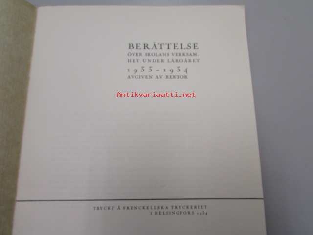 | Saatavilla | 3 kpl | | Julkaisuvuosi | 1934 | | Sivuja | 23 | | Painos | 1. | | Kunto | K3 | | Sidonta/painoasu | Vihko | | Kielet | Ruotsi |