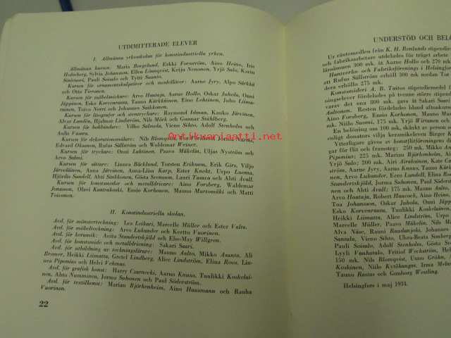 Taideteollisuuskeskuskoulu - Centralskolan för konstflit, 1934