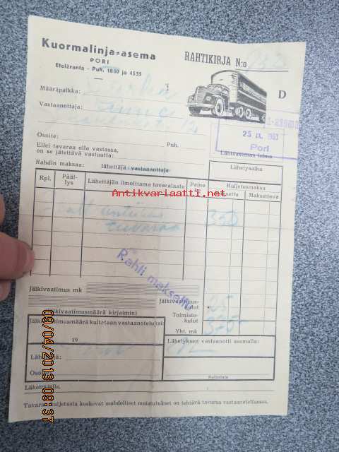 Kuormalinja-asema Pori -rahtikirja 6.6.195?