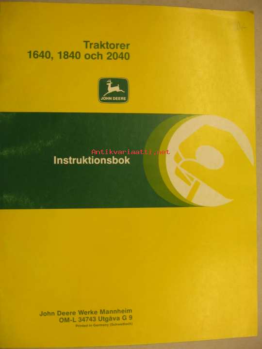 Deere & Co , 19??Käyttöohjekirja ruotsiksi.