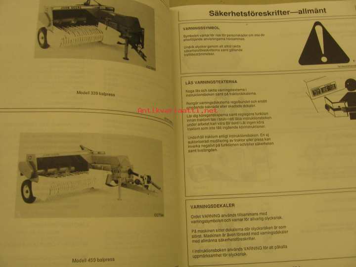 John Deere, 19??Käyttöohjekirja ruotsiksi.