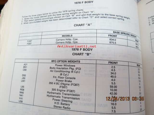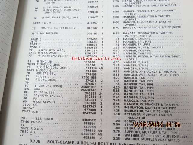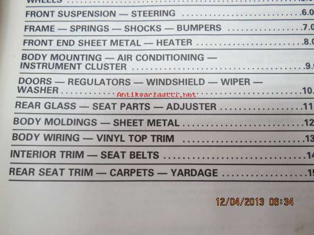 Chevrolet 1976 thru 1980 Chassis and Body parts catalog -varaosanumerot ym.