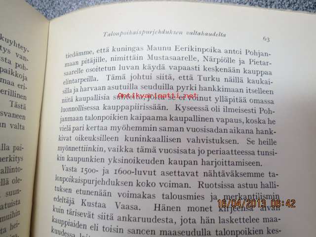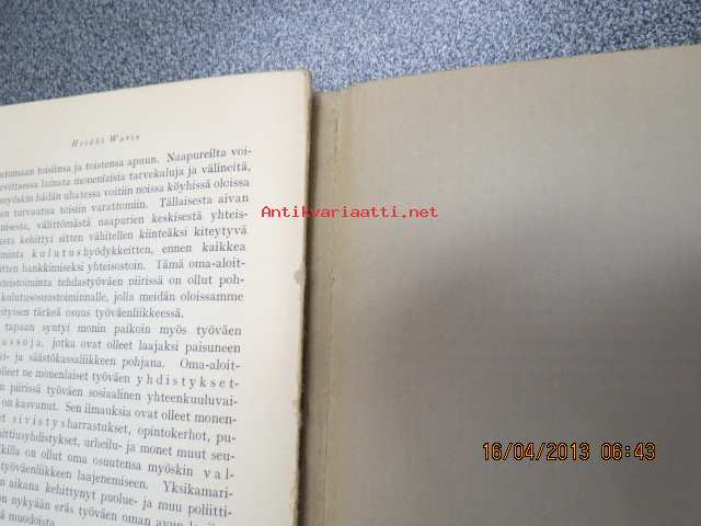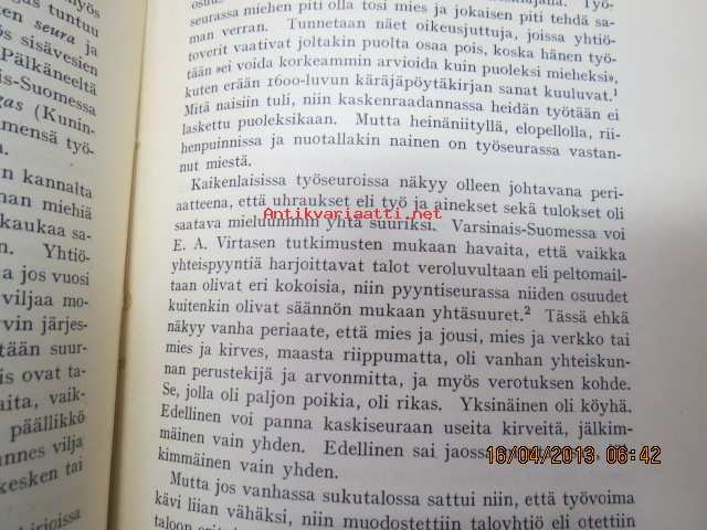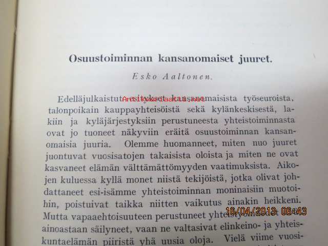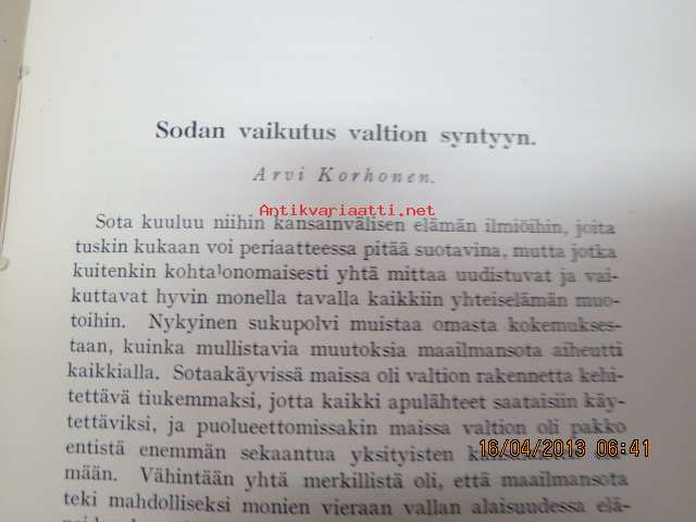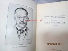 | Saatavilla | 1 kpl | | Julkaisuvuosi | 1939 | | Sivuja | 162 | | Painos | 1. | | Kunto | K2 | | Sidonta/painoasu | Nidottu (pehmeäk.) | | Kielet | Suomi |