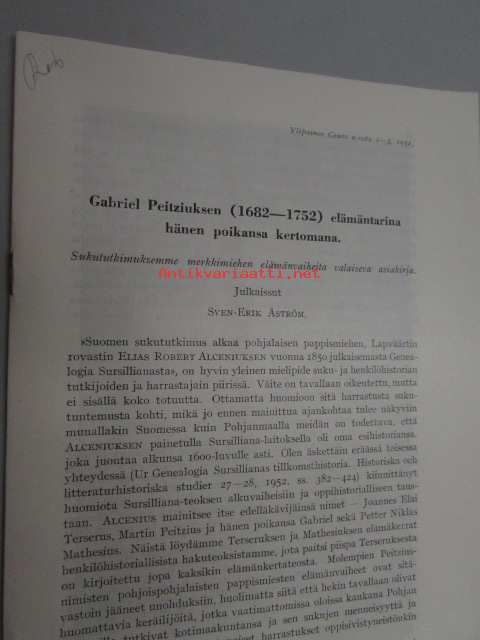 Gabriel Peitziuksen (1682-1752) elämäntarina hänen poikansa kertomana eripainos Genos 1952 nr 2-3