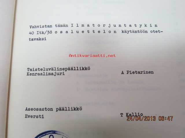 Ilmatorjuntatykin 40 ItK/38 osaluettelo