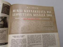 Suomen Kuvalehti 1956 nr 43, Ernest Hemingway kirjoittaa itsestään, miksi Kannaksesta oli luovuttava kesällä -44, suomalainen keittiö, viikon kasvoja mm. Mauno Koivisto, koko sivun mainokset Fenno radio, Fazerin parhain, HellasK.L. Oesch: Miksi Kannaksesta oli luovuttava kesällä 1944, yllättikö venäläisten suurhyökkäys suomalaisen sodanjohdon?