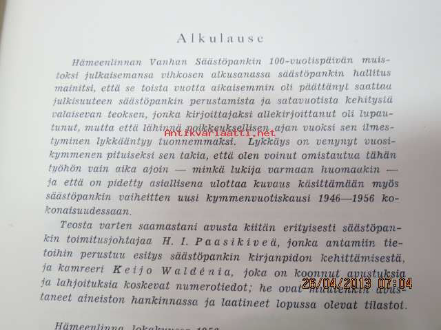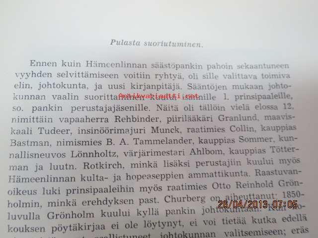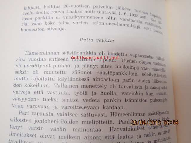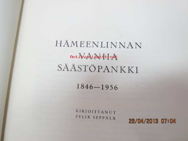 Hämeenlinnan Säästöpankki, 195618 x 25 cm.