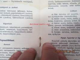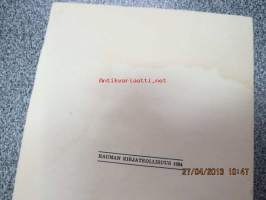 | Saatavilla | 1 kpl | | Julkaisuvuosi | 1924 | | Sivuja | 8 | | Painos | 1 | | Kunto | K2 | | Sidonta/painoasu | Pienpainate | | Kielet | Suomi |