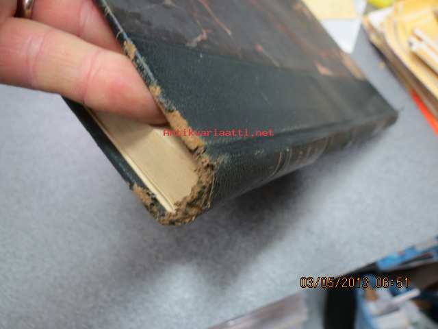 | Saatavilla | 1 kpl | | Julkaisuvuosi | 1933 | | Sivuja | 180 | | Painos | 1. | | Kunto | K2 | | Selän ylä- ja alaosa kuluneet | | Sidonta/painoasu | Nahkaselkä | | Kielet | Suomi |