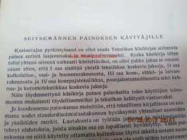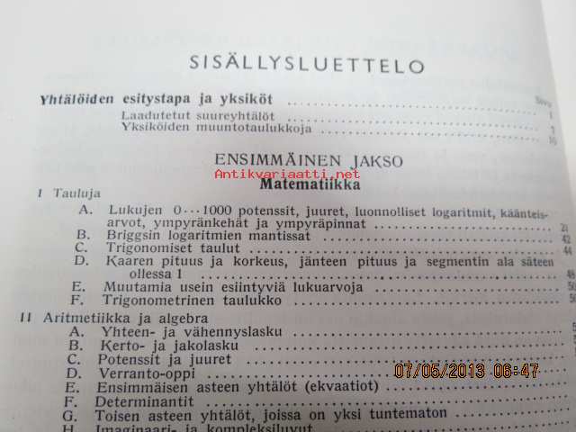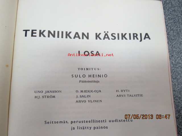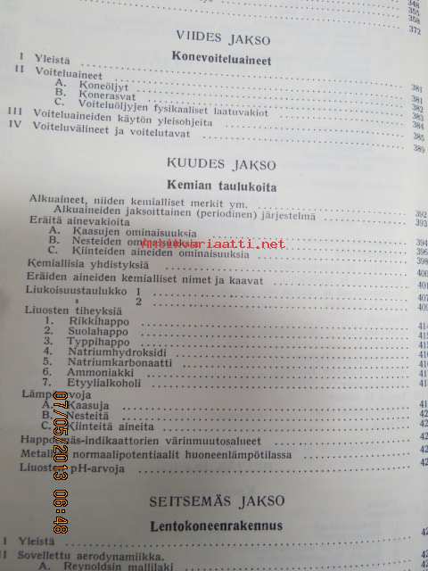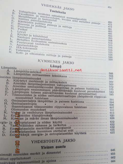 | Saatavilla | 1 kpl | | Julkaisuvuosi | 1951 | | Sivuja | 695 | | Painos | 7. | | Kunto | K2 | | Sidonta/painoasu | Sidottu (kansipaperit) | | Kielet | Suomi |