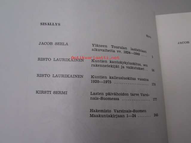 Varsinais-Suomen maakuntakirja 24 (Lasten päivähoidon tarve, kuntien kantokykyloukitus, kuntien kalleusluokitus, Yläneen Tourulan lasitehtaan alkuvaiheita ym)