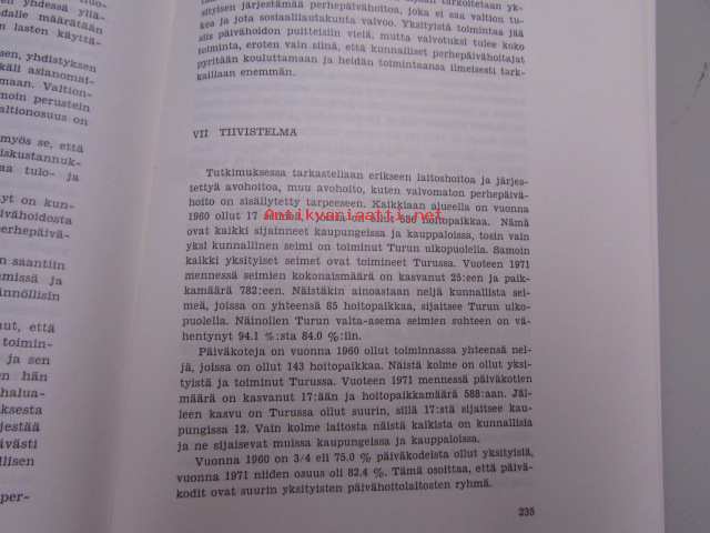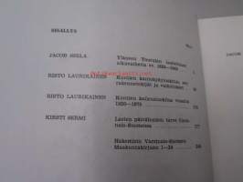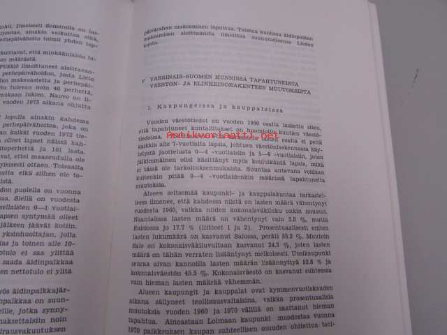 | Saatavilla | 5 kpl | | Julkaisuvuosi | 1977 | | Sivuja | 263 | | Painos | 1 | | Kunto | K3 | | Sidonta/painoasu | Nidottu (pehmeäk.) | | ISBN | 951-9054-04-9 | | Kielet | Suomi |