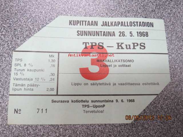 Turun Palloseura-KuPS 26.5.1968 maavallikatsomo 3, Jalkapallon SM-sarja pääsylippu