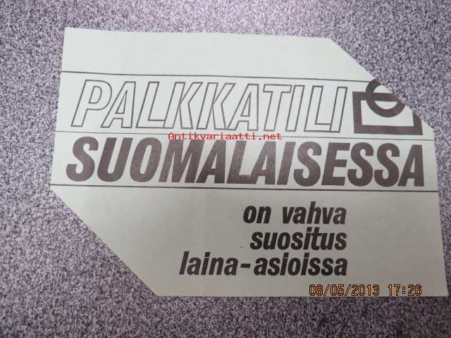 | Saatavilla | 1 kpl | | Julkaisuvuosi | 1968 | | Kunto | K3 | | Sidonta/painoasu | Pienpainate | | Kielet | Suomi |