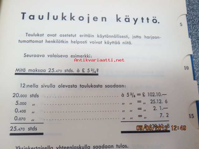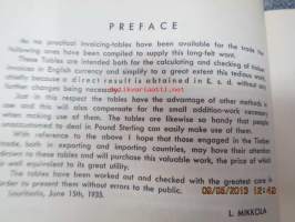 Puutavaran laskutustaulukkoja - Faktureringstabeller för trävaror - Price calculating tables for wood goods