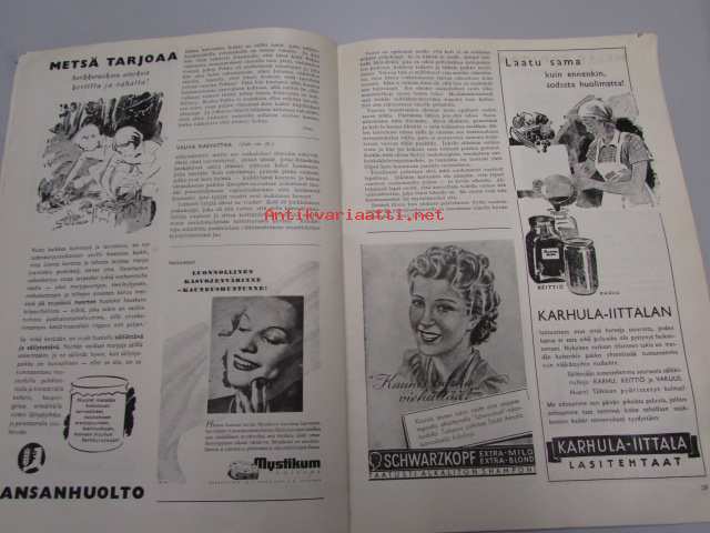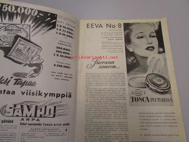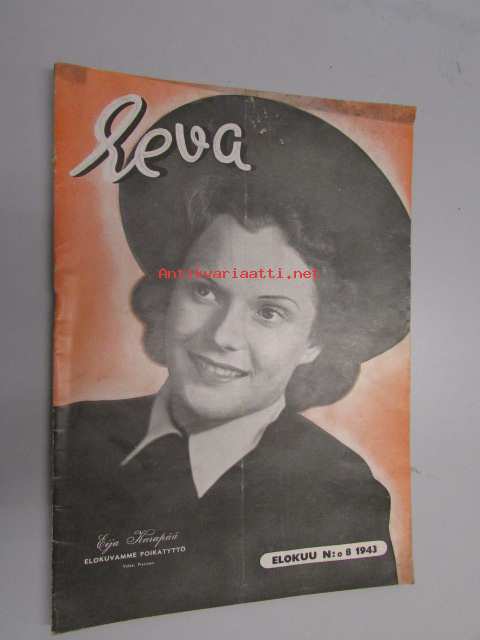 Eeva 1943 nr 8 (Eija Karapää, avioliiton ongelmia tieteen valokeilassa, muotifilosofiaa, Mystikum -puuterimainos ym)