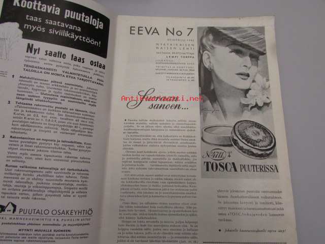 Eeva 1943 nr 7 (Verna Piponius, muoti tulee Aunuksesta, Irja Seeve, Miami Sun Tan-mainos ym)