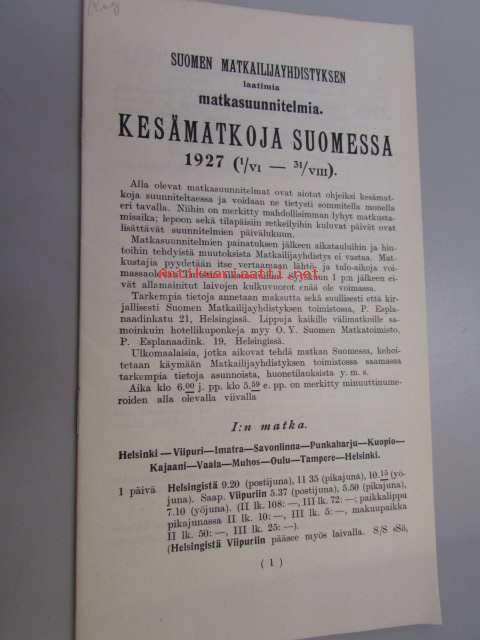Suomen Matkailijayhdistyksen laatimia matkasuunnitelmia Kesämatkoja Suomessa 1927