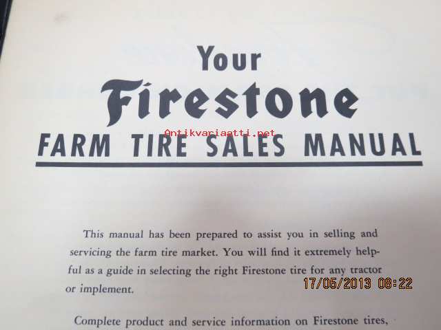Firestone Farm Tires Sales Manual -maatalouskonerenkaiden myyntikäsikirja / edustajan kansio