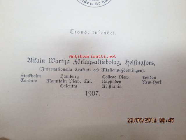 | Saatavilla | 1 kpl | | Julkaisuvuosi | 1907 | | Sivuja | 484 | | Painos | 1. | | Kunto | K2 | | Sidonta/painoasu | Kuvitettu kovakantinen | | Kielet | Ruotsi |