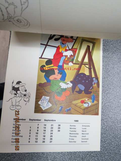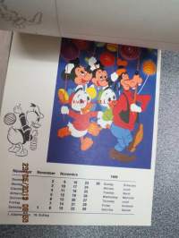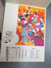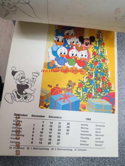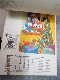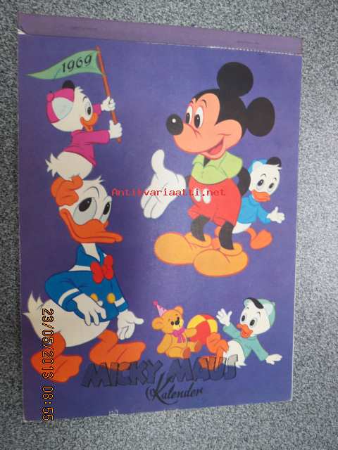 Micki maus 1969 kalender -Walt Disney kalenteri, jossa irroitettavia (leikattavia) hahmoja ja käytetty kuukausikuva lähetettävissä postikorttina