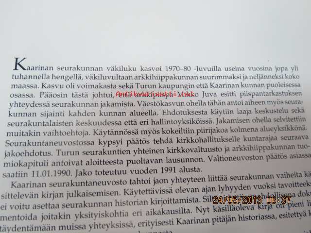 Kaarinan seurakunta, 199021 x 27 cm.
