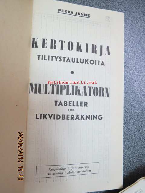 Kertokirja (tilitystaulukoita) - Multiplikatorn tabeller för likvidberäkning