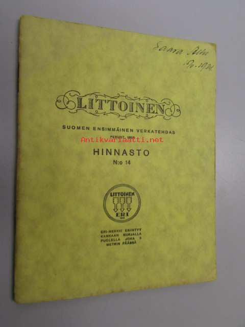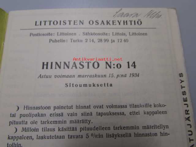 Littoinen Oy verkatehdas hinnasto nr 14 (Saara Alho)
