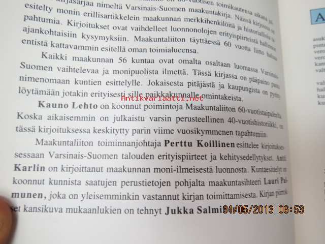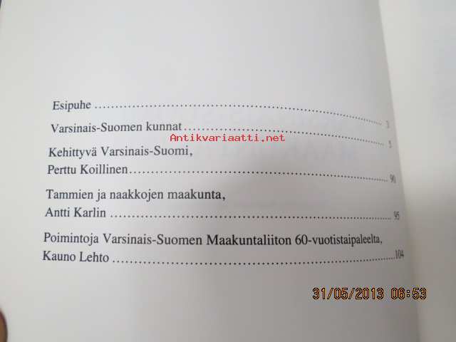 Varsinais-Suomen maakuntakirja 26 sis. mm. artikkelit; Varsinais-Suomen kunnat, Tammien ja naakkojen maakunta, Maakuntaliiton 60-vuotistaipaleelta