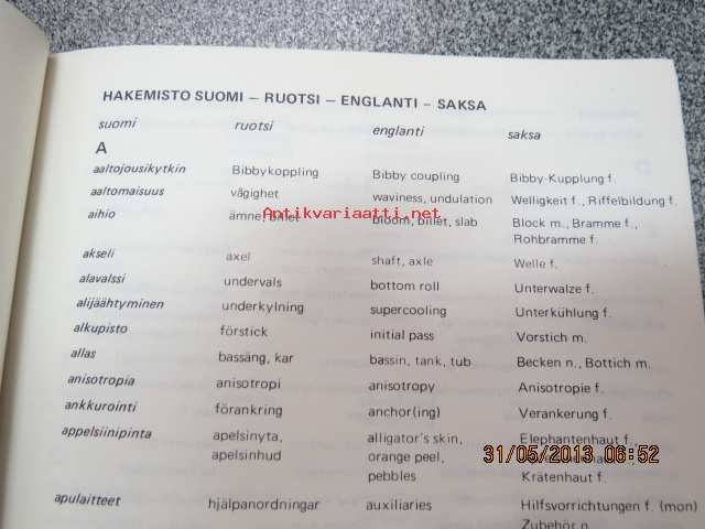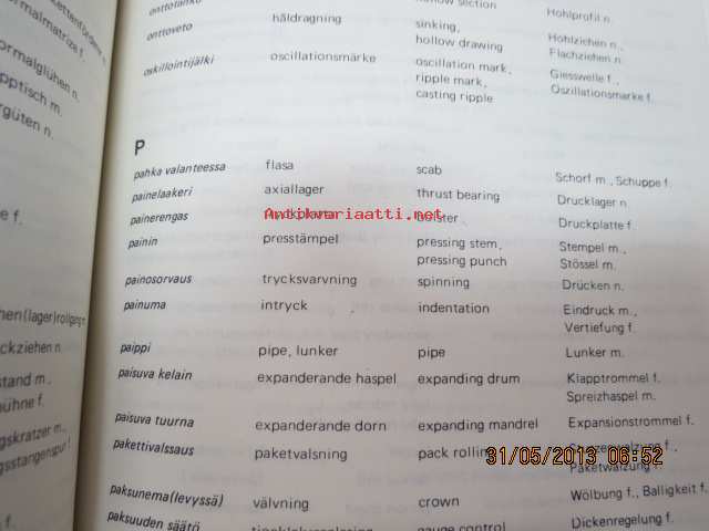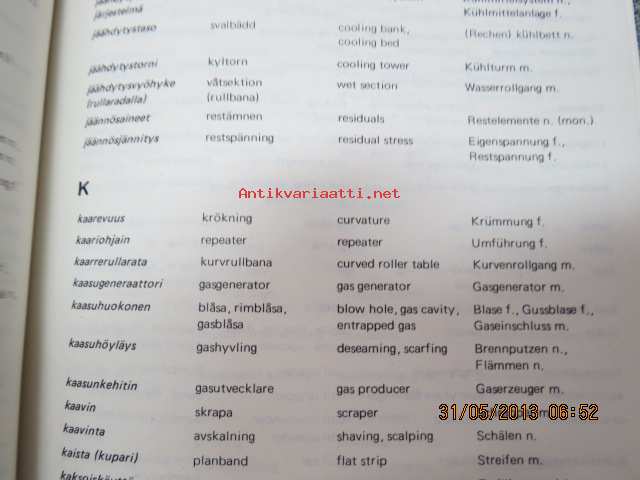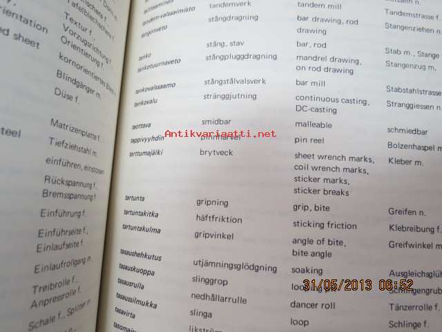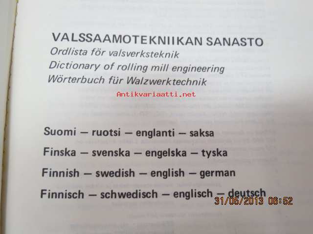 Valsaamotekniikan sanasto - Ordlista för valsverksteknik - Dictionary of rolling mill engineering - Wörterbuch fü Walzwerktechnik, suomi-ruotsi-englanti-saksa