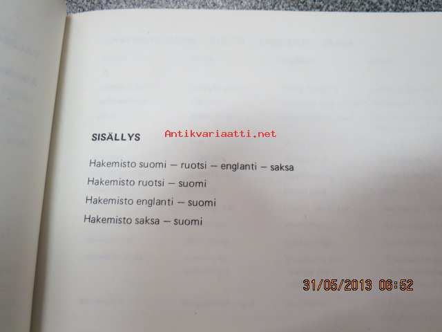 | Saatavilla | 2 kpl | | Julkaisuvuosi | 1978 | | Sivuja | 98 | | Painos | 1. | | Kunto | K3 | | Sidonta/painoasu | Nidottu (pehmeäk.) | | ISBN | 951-9336-18-4 | | Kielet | Suomi, Ruotsi, Englanti, Saksa |