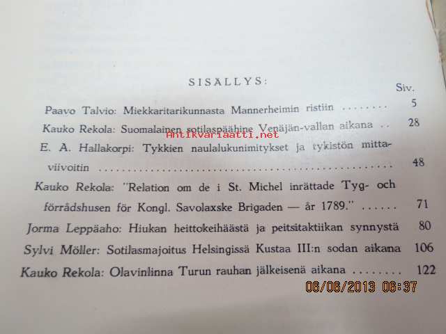 Sotamuseo III 1950 vuosikirja, sis. seuraavat artikkelit; Miekkaritarikunnasta Mannerheimin-ristiin, Suomalainen sotilaspäähine Venäjän-vallan aikana, Tykkien