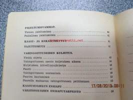 | Saatavilla | 1 kpl | | Julkaisuvuosi | 1944 | | Sivuja | 60 | | Kunto | K3 | | Tuplakannet! | | Sidonta/painoasu | Nidottu (pehmeäk.) | | Kielet | Suomi |