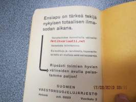 Sakari Mustakallio, Suomen väestönsuojelujärjestö, 194412 x 17 cm. Tässä kappaleessa on vahingossa kahdet kannet päällekkäin.