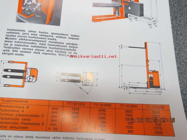 Rocla TT-12 tukipyörätrukki -myyntiesite
