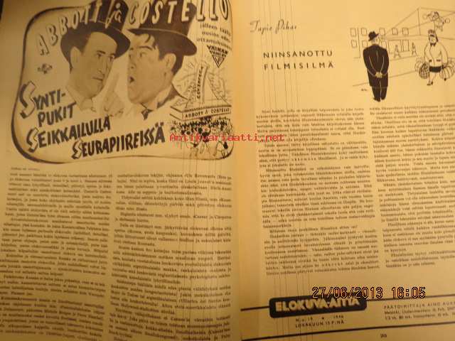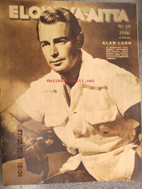 Elokuva-Aitta 1946 nr 19, Kansikuva Alan Ladd, Helena Kara+ Hannu Leminen koti esitellään, Ritva arvelo, Cornel Wilde, Lana Turner, ym.
