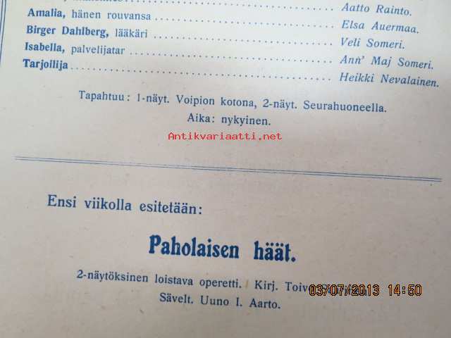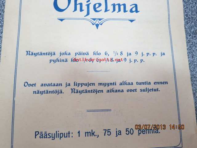 Helikon, 1913?15 x 23 cm. Huom! Tässä ohjelmassa ei elokuvanäytöstä.
