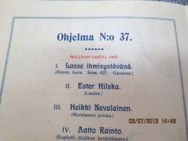 Helikon, Kluuvikatu 2, Helsinki elokuva- / operettiteatteri - Ohjelma nr 37 mm. Lasse ihmisystävänä -kinematografinen kuva, sensuuri nr 627 Gaumont-filmi, Tanner, Rainto, Someri -live-esitykset -käsiohjelma