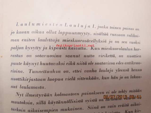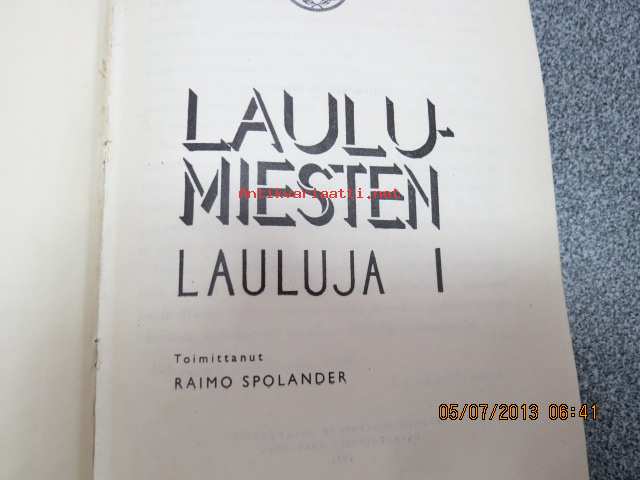 Toimittanut Raimo Spolander, Laulu-Miehet, 194413 x 19 cm.