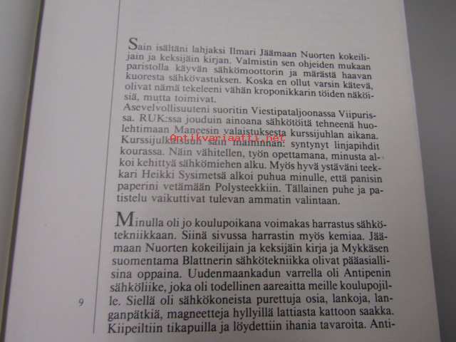 | Saatavilla | 1 kpl | | Julkaisuvuosi | 1986 | | Sivuja | 270 | | Painos | 1 | | Kunto | K3 | | Sidonta/painoasu | Sidottu (kansipaperit) | | ISBN | 951-99761-0-8 | | Kielet | Suomi |