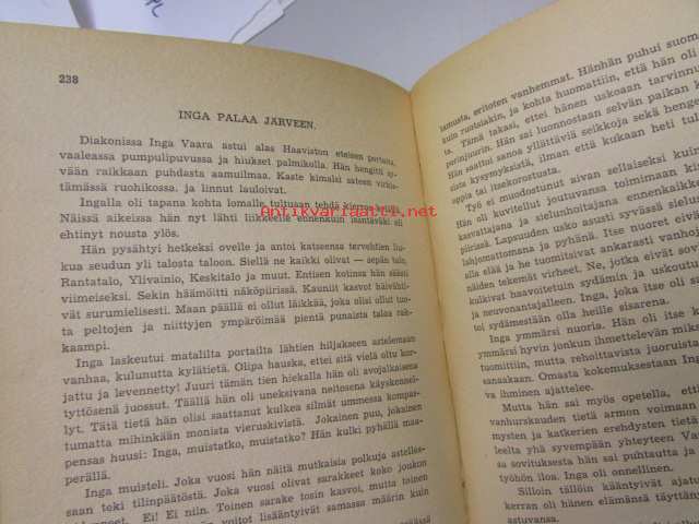 | Saatavilla | 1 kpl | | Julkaisuvuosi | 1950 | | Sivuja | 312 | | Painos | 1. | | Kunto | K3 | | Sidonta/painoasu | Sidottu (kovak.) | | Kielet | Suomi |